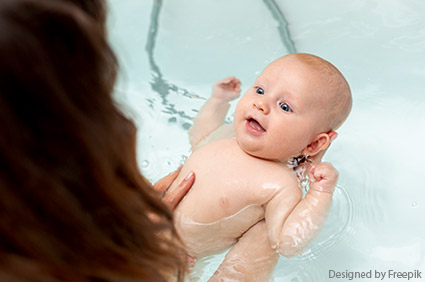 Zur Vorbereitung eines Basenbades für Babys, Kleinkinder und Kinder beziehungsweise Schulkinder, ist darauf zu achten, dass das Badezimmer angenehm temperiert ist.